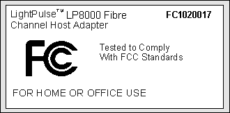 The reader is cautioned that any changes or modifications to the equipment not expressly approved by Emulex could void the user’s authority to operate this equipment.