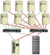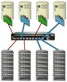 For clustering applications, a Slingshot 4210 ten-port switch allows you to support your configurations today, and scale to higher node requirements in the future, providing investment protection for both hardware devices and qualification support resources. Next-generation clustering applications will connect up to eight servers, requiring a ten port switch such as the Slingshot 4210 to attach storage to the server cluster (Figure 2).